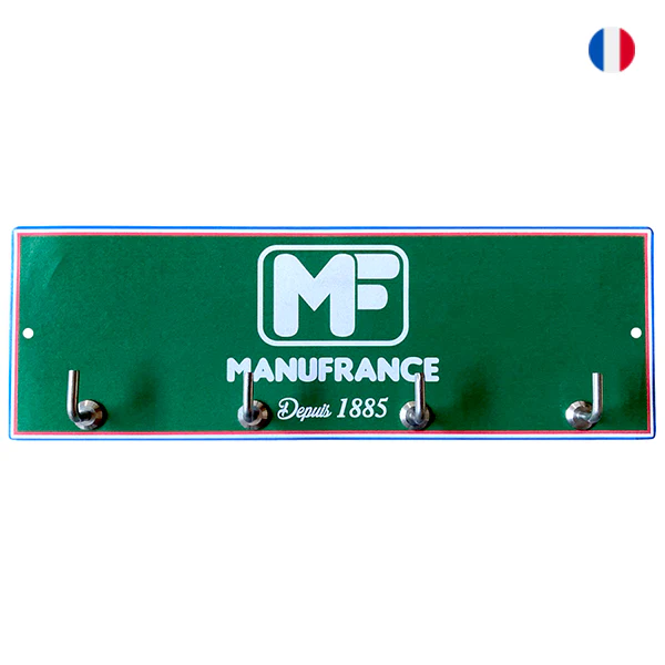 Pratique, décoratif et tendance avec son look rétro vintage, le porte-clés mural émaillé Manufrance marqué de l’emblématique logo MF des années 70 peut être utilisé en porte-clés, en accroche-torchons dans la cuisine ou en porte tasse. Fabriqué en France en métal émaillé il brille de tout son éclat et peut être placé à l’intérieur comme à l’extérieur.