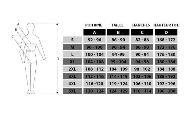 Taille C 4XL & C 5XL (Même sizing que le XXXL mais avec une largeur de buste plus importante)