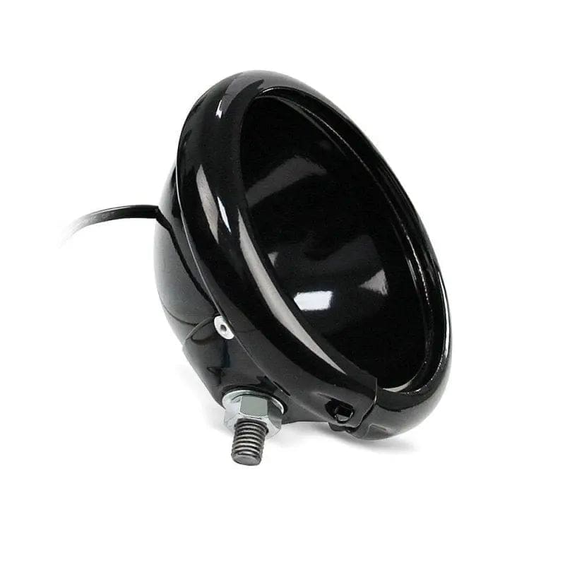 Le boîtier de phare moto universel de 5 3/4″ pouces (14,6 cm) est parfait pour les motos custom, les cafe racers et les conversions individuelles. Il est fabriqué en aluminium peint en noir brillant. Le boîtier est livré avec un câble de raccordement pour les phares avant à LED et peut également être adapté aux inserts de phares H4. Les inserts de phare ne sont pas inclus.